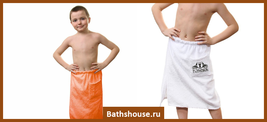 Крой напоминает мужскую модель. Разница между ними заключается в размере. По стальным параметрам детский килт не имеет других существенных отличий. Но у него более широкая область применения. Так, детская модель предназначается для бани, сауны, дома – используется после душа, ванны. Ее чаще используют вместо полотенца. Для сравнения мужской и женский вид изделия также может применяться для аналогичных целей, но встречается преимущественно в бане.