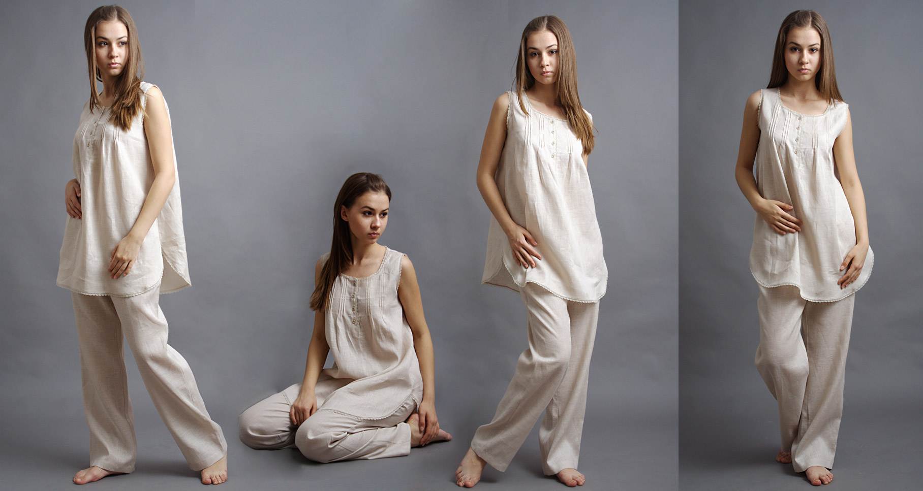 - Лен – льняная одежда достаточно быстро мнется, но она имеет преимущества в своей прочности и комфортности. Она не дает запариться в жару, а в прохладу, благодаря своим свойствам, удерживает тепло. Ткань достаточно износостойкая, поэтому с легкостью выдерживает частую эксплуатацию.