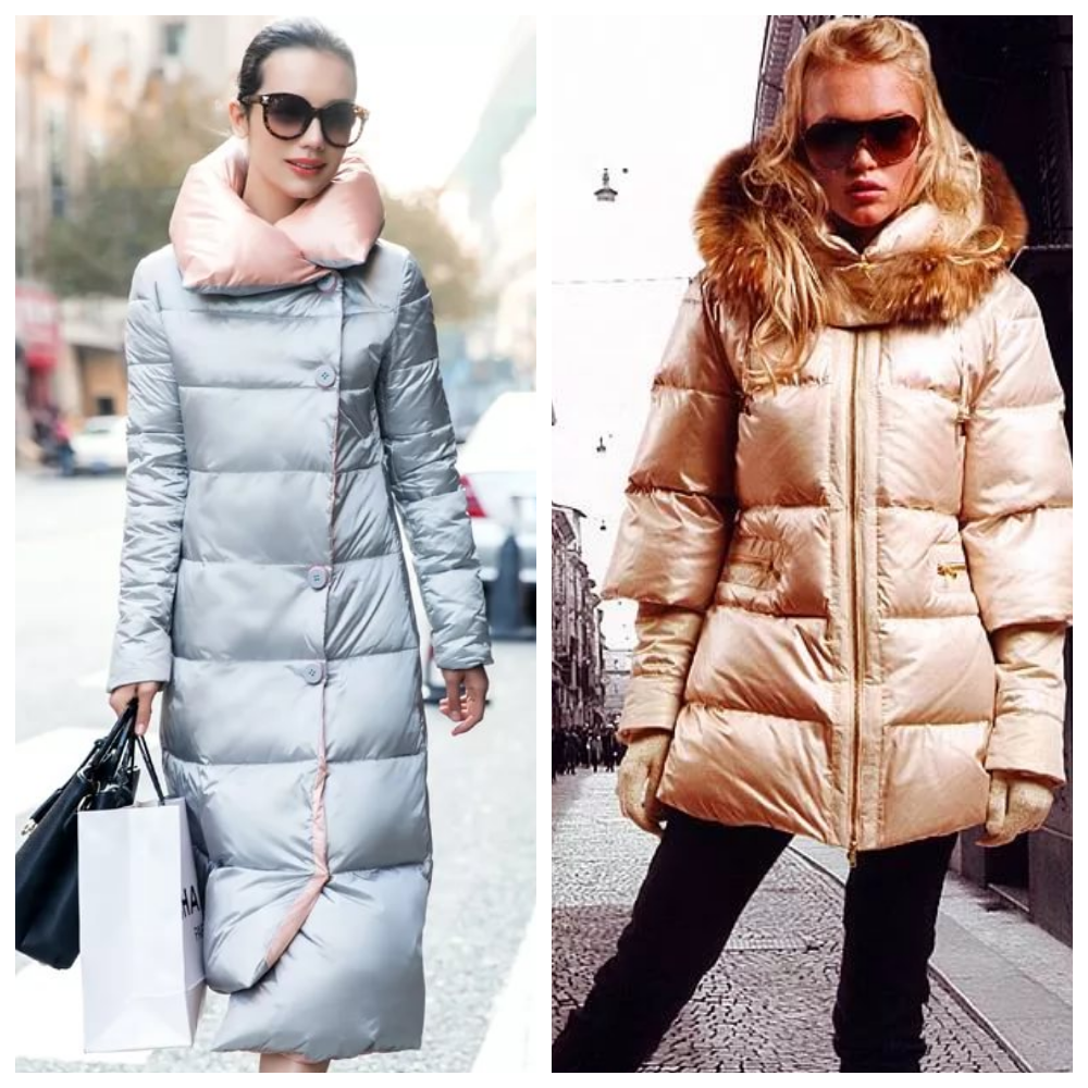 При высоком росте хорошим выбором станет длинный объёмный пуховик. Дамам с большим бюстом подойдёт пуховое пальто с широкими горизонтальными полосами под пояс. А обладательницам широких бёдер следует выбирать удлинённые пуховые пальто