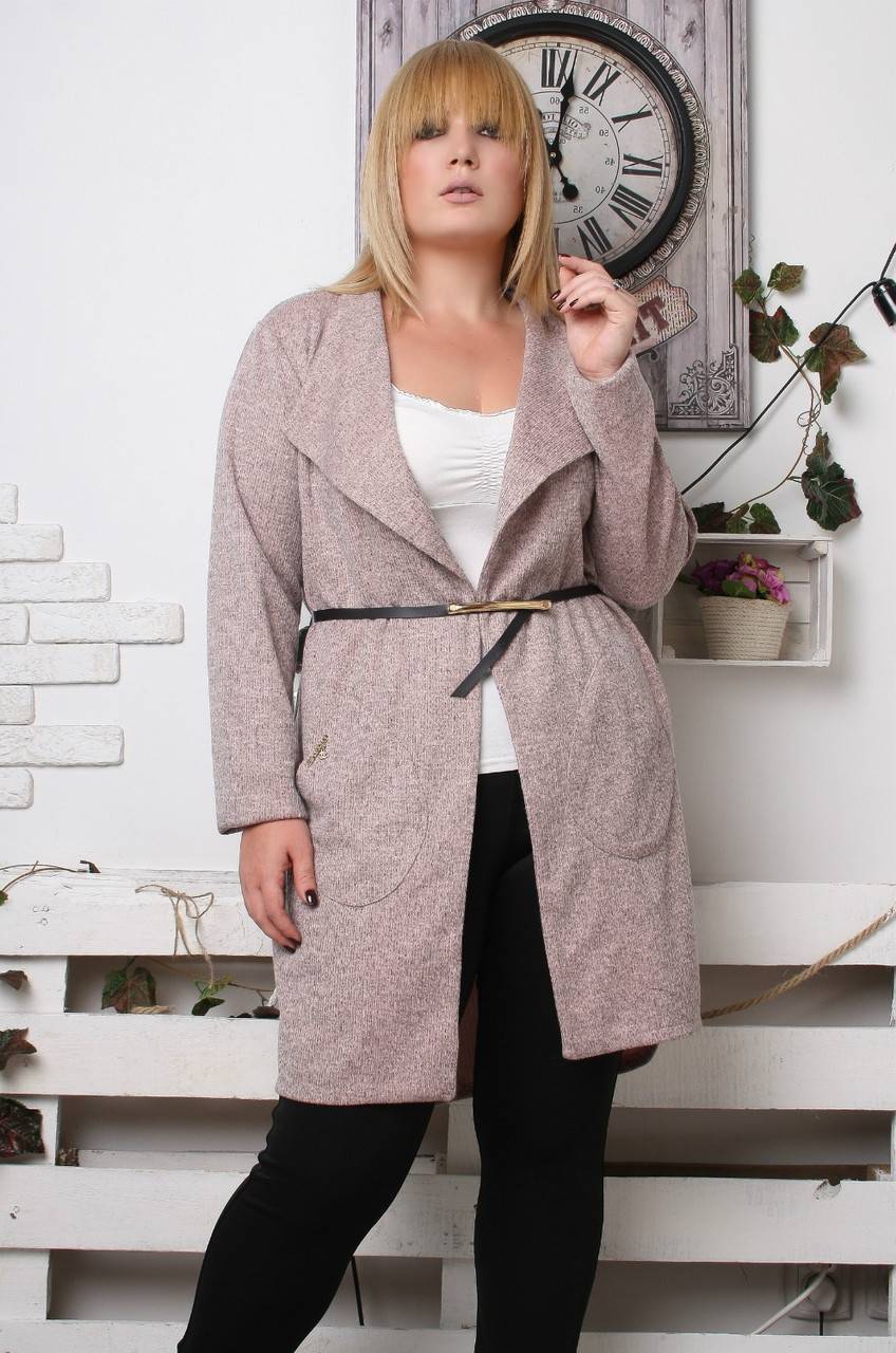 Полным девушкам подойдут кардиганы прямого или А-образного кроя, так как они выгодно корректируют силуэт. Модные мешковатые и оверсайз модели при наличии лишнего веса не подходят, поскольку сделают фигуру грузной.