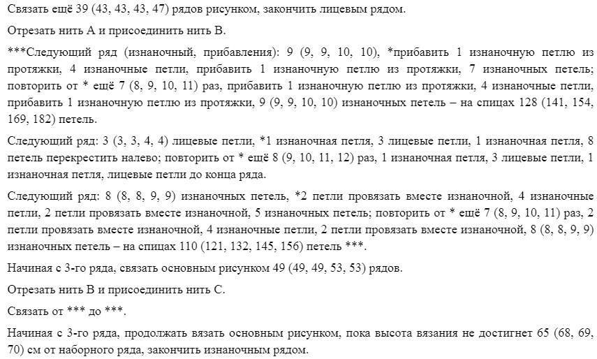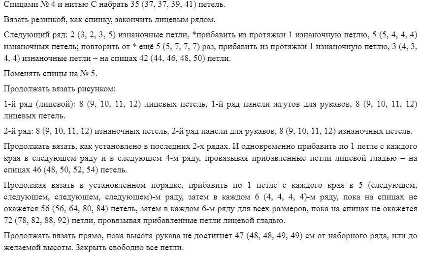 Образец вязания жгутов для рукавов на 26 петлях (панель):
