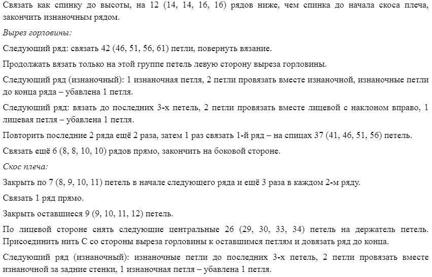 Описание от дизайнера Pat Menchini дано на размеры S (M, L, 1XL, 2XL): окружность груди – 91-97 (102-107, 112-117, 122-127, 132-137).