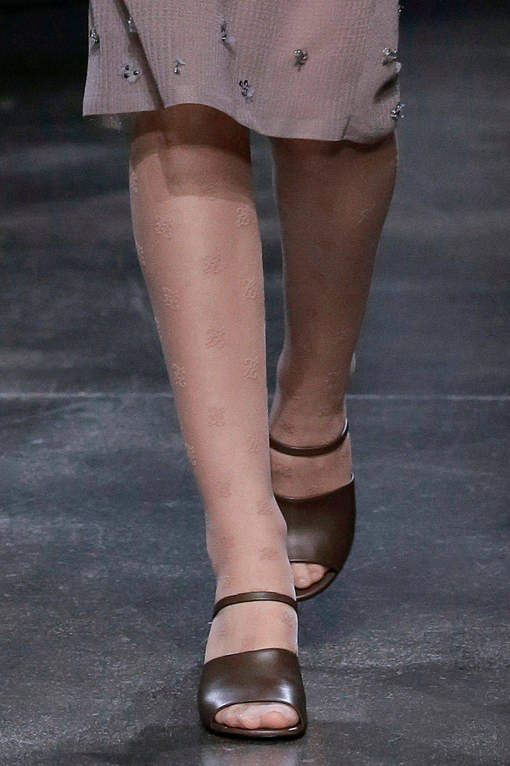 - С сандалиями: предпочтительны бесшовные на ступнях и в области пальцев колготы. Швы не должны быть видны.