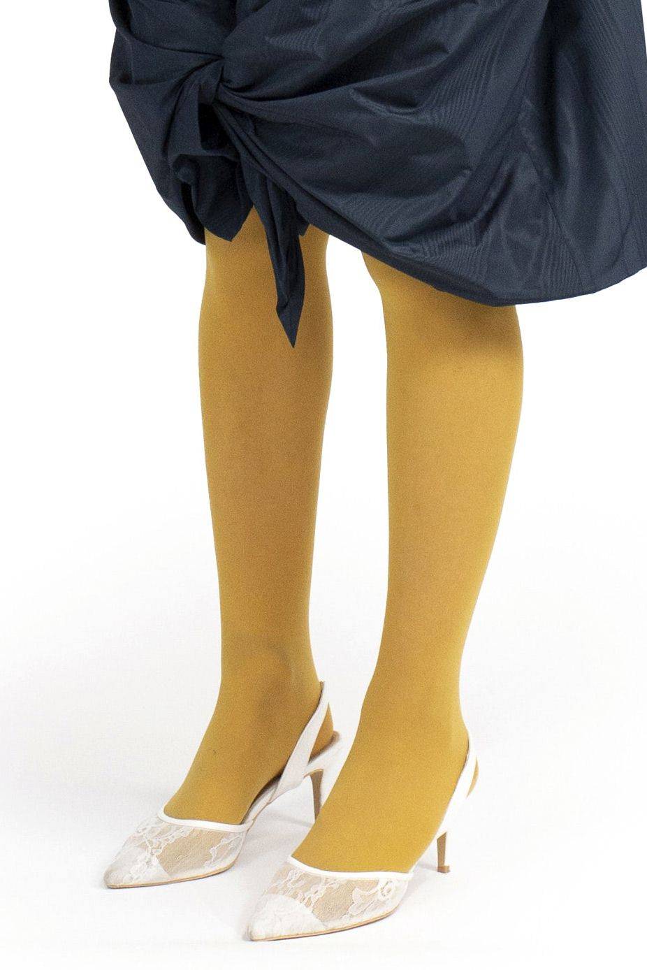 - теплые цветные колготки, выполненные в очень ярких оттенках, например, красном, желтом, зеленом, ярко-синем. Они предназначены выполнять роль изюминки и яркого акцента образа, но при этом выбор вещей, которые можно комбинировать с ними, ограничен. Это одежда и обувь сдержанных черных, коричневых, темно-синих тонов и сочетающаяся по сходной цветовой гамме.