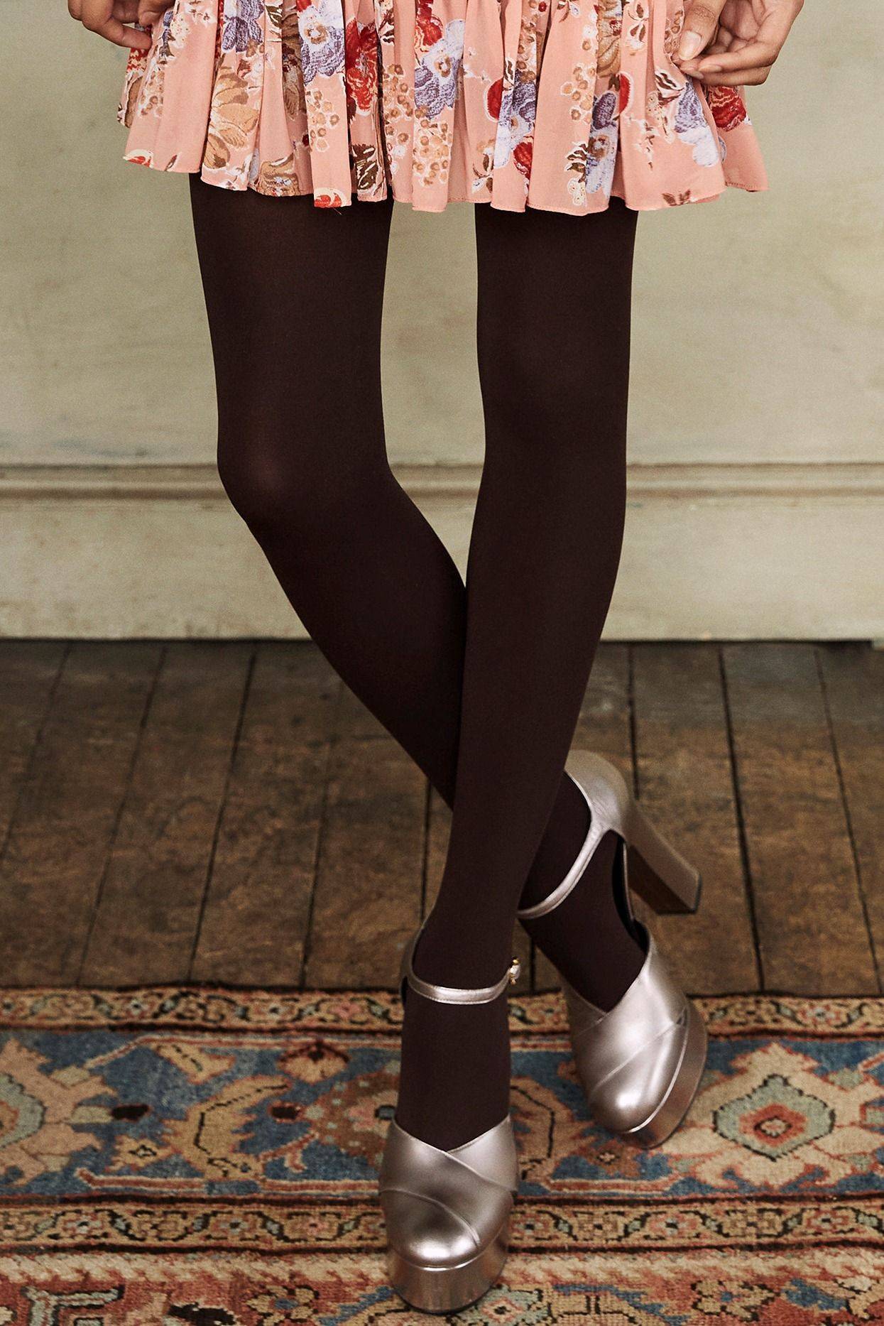 - Если ножки полные, подойдут колготки однотонных темных цветов, а также без принтов, без блеска и непрозрачные. Это помогает скрыть объемы. Выбирайте обувь и колготки одного колера.