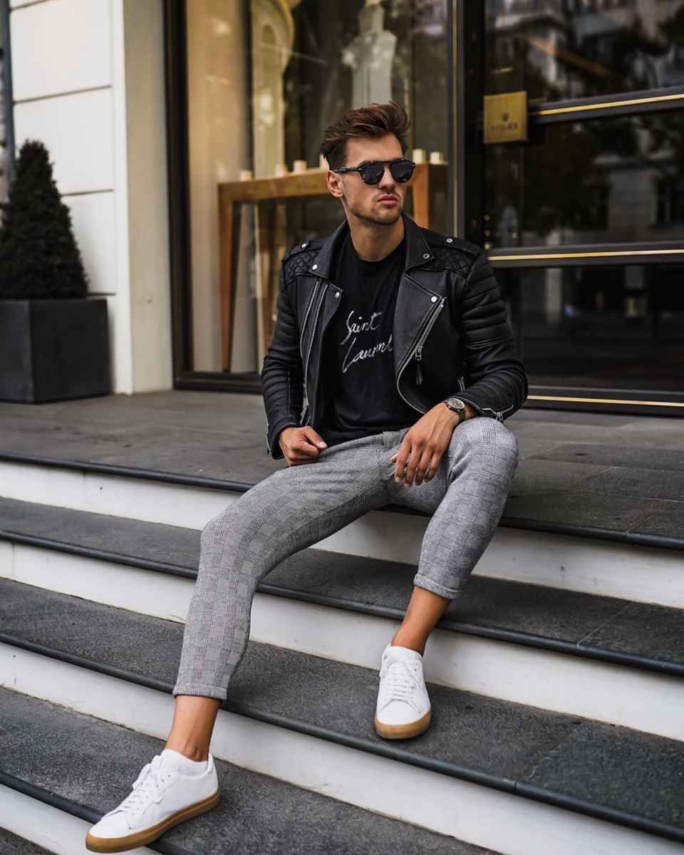 С чем носить кожаную куртку мужчине: 30 фото идей