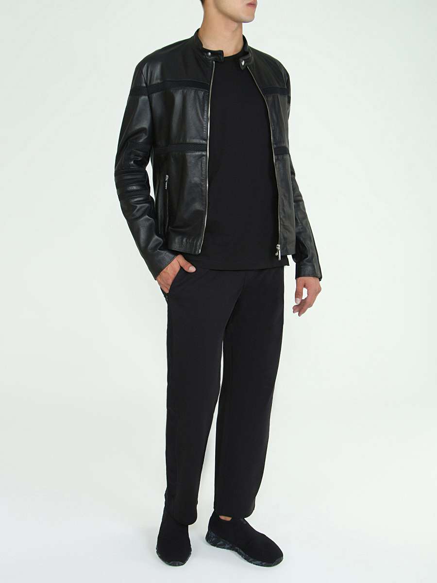 На четвертом месте мужская кожаная куртка мотоциклетного типа Bikkembergs BI535EMCEEY8 с тонким слоем утепления синтепоном. Она рассчитана на осенне-весенний сезон. Эта модель прямого кроя с двумя наружными и одним внутренним карманом, воротником-стойкой и декоративными диагональными строчками относится к классу хорошие кожаные куртки из-за своих высоких качественно-эксплуатационных характеристик. На рукавах есть скрытые трикотажные манжеты, снизу уплотнитель отсутствует. Узнать куртку бренда можно по нашивке на верхней части спинки.