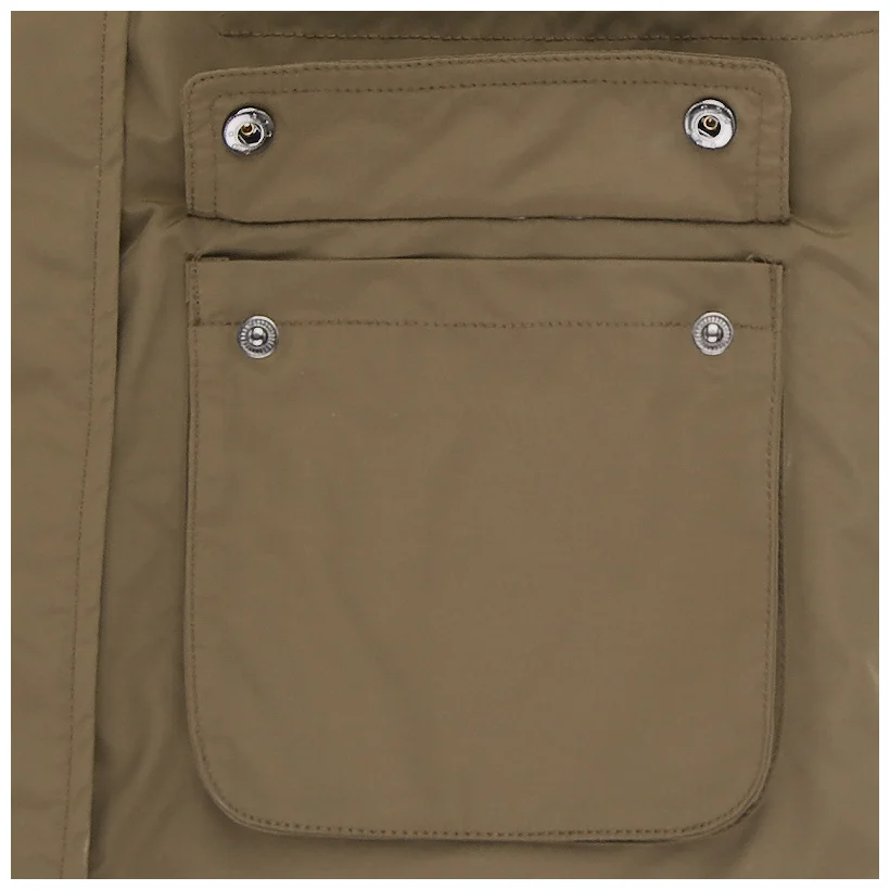 Помимо темных однотонных цветов, внимание можно обратить и на защитный окрас цвета хаки, отсылающий к стилю милитари