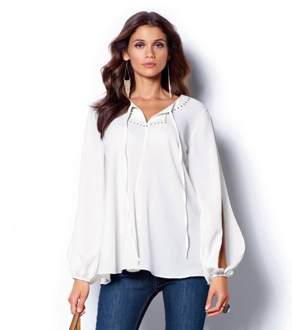 Текущий сезон наполнен большим разнообразием трендов. Сейчас в моде строгие рубашки, имитирующие мужские фасоны. Дизайнеры уравновесили излишнюю строгость обилием декоративных элементов.