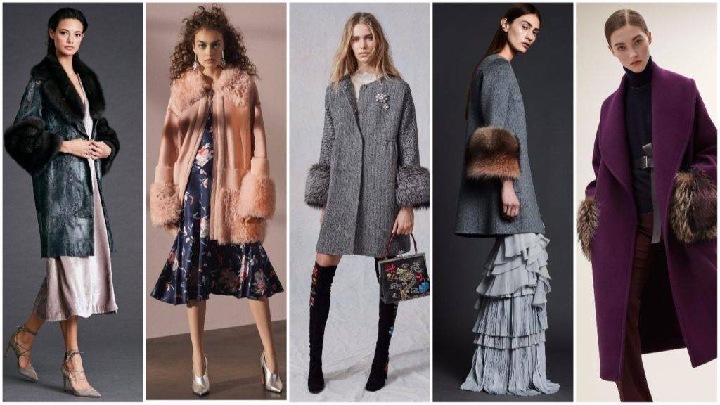 Искусственный или натуральный мех украшает манжеты и воротники. Цвет может быть как контрастным, так и совпадать с оттенком пальто. Тут уже нужен более тщательный выбор сочетания одежды.