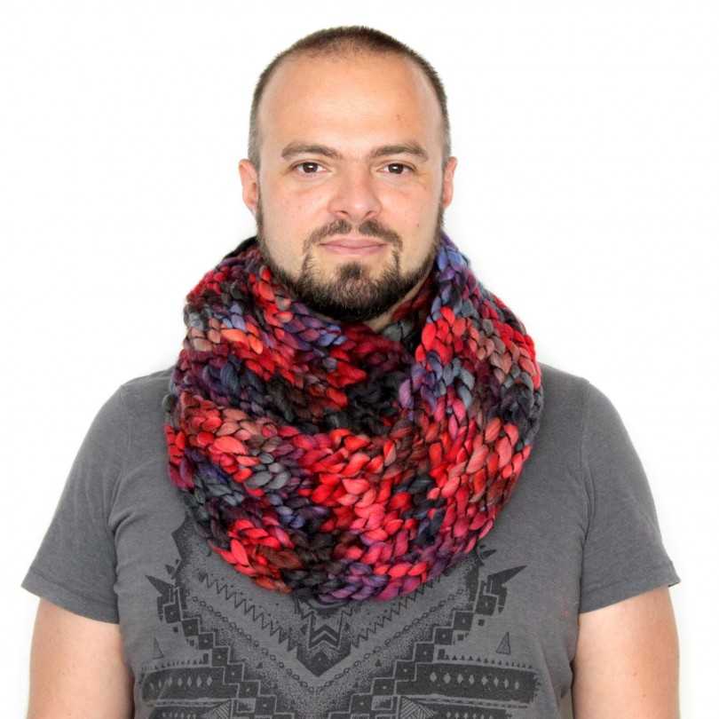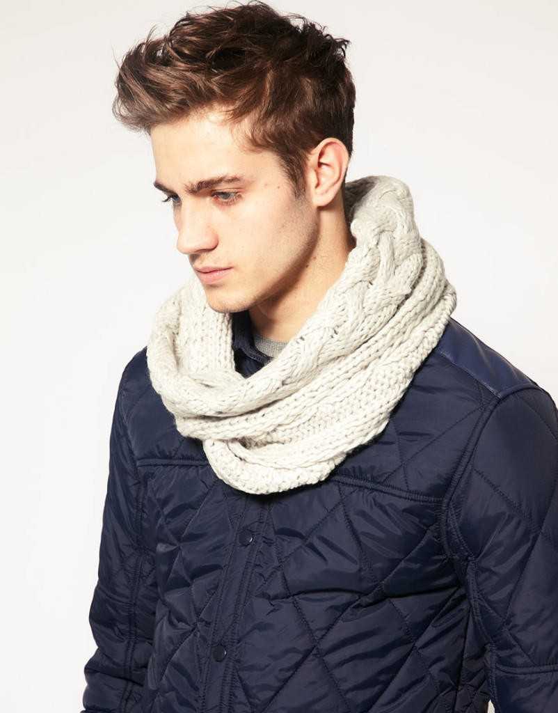 Такой мужской снуд в один оборот будет отлично греть в стужу и хорошо защищать от ветра