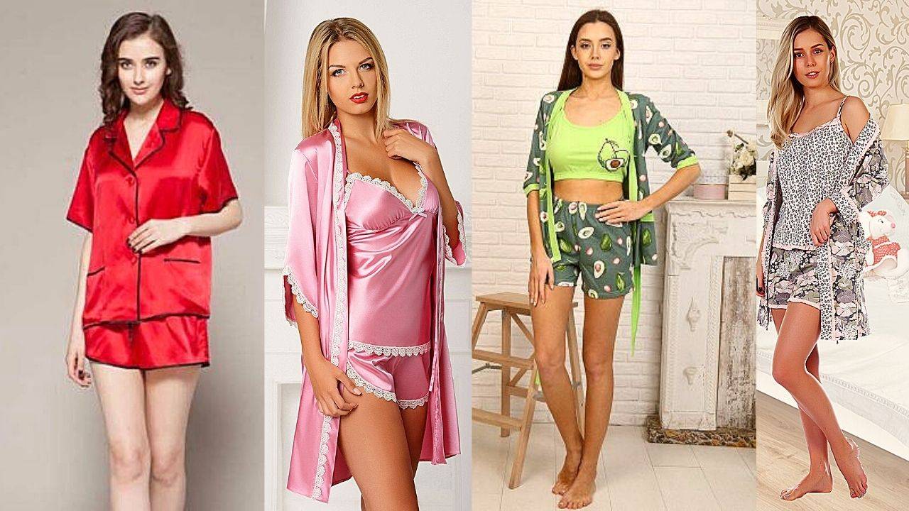 Изделия для сна и отдыха в пижамном стиле состоят из короткого фасона, длинных брюк, либо коротких шорт. Пеньюар может иметь форму майки, комбинации. Линия груди, низ брюк (шорт), разрезы украшены кружевом в тон основной цветовой гаммы или контрастным цветом.