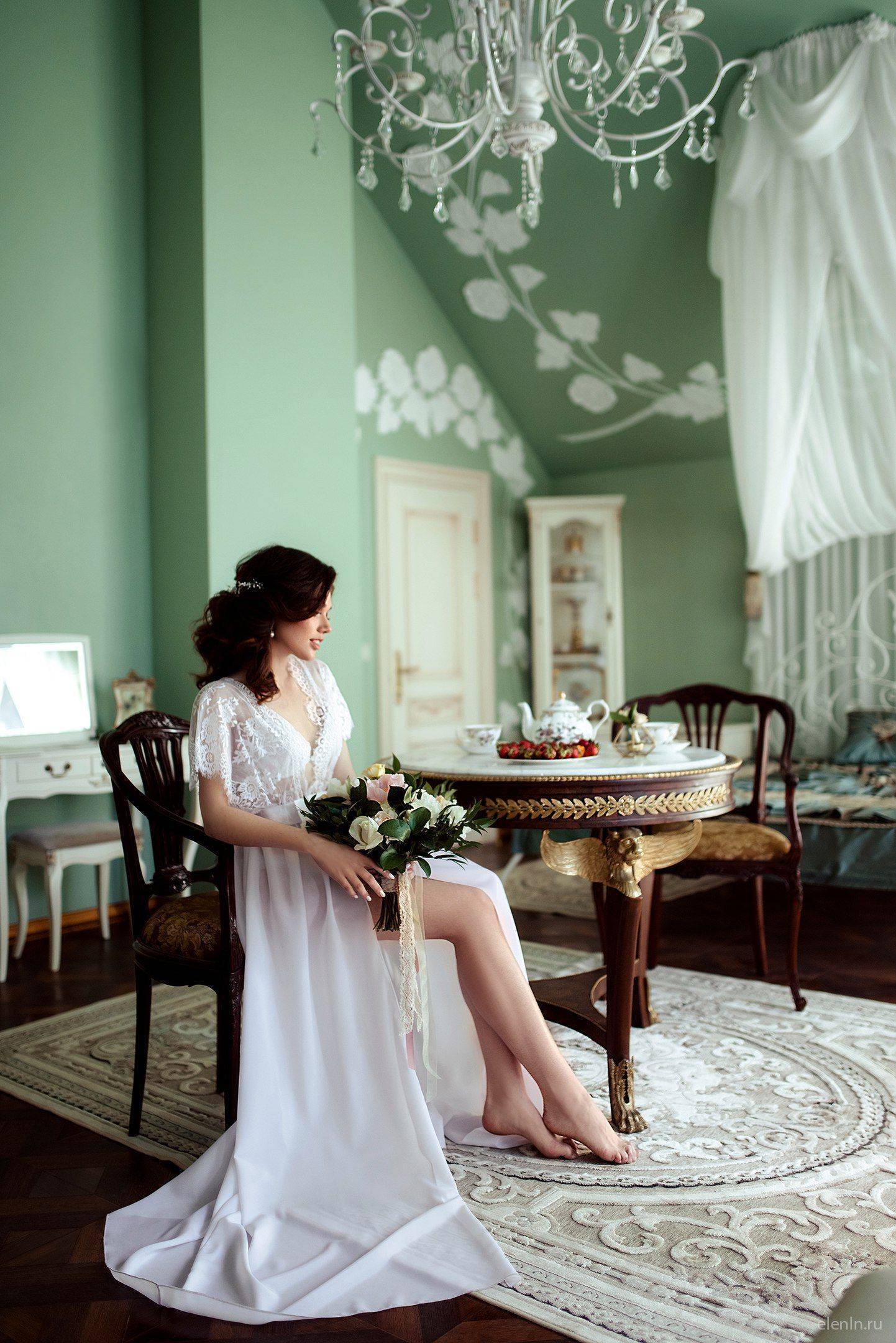 Конечно же, если необходимо создать более нежный или элегантный образ, стоит выбрать светлые, спокойные оттенки. К примеру, пеньюар белого, бежевого или любого пастельного оттенка выглядит особенно красиво. Преимущественно такое решение выбирают для сна или же для утренней фотосессии невесты