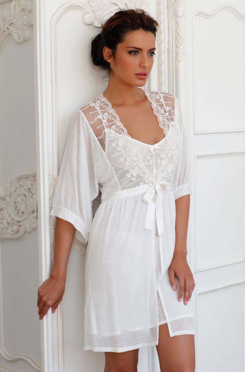 Когда речь заходит о выборе пеньюаров для сна, то изделия белого цвета считаются наиболее практичными и востребованными. Тем более, что многообразие материалов, используемых для пошива подобных женских аксессуаров позволяют каждой барышне подобрать идеальную модель по своему усмотрению. Почему белый? Всё очень просто. Во-первых, на подсознательном уровне наш мозг воспринимает белый цвет, как нечто лёгкое, воздушное и чистое, вследствие чего, мы просто расслабляемся и забываем обо всех проблемах и тревогах. Во-вторых, белая одежда не линяет, легка в уходе и, как бы это необычно не звучало, сочетается с любым дизайном постельного белья и стилем интерьера. И не стоит удивляться. Многие барышни очень трепетно относятся к подобным вещам и тщательно следят за гармоничным соседством всего, что их окружает.
