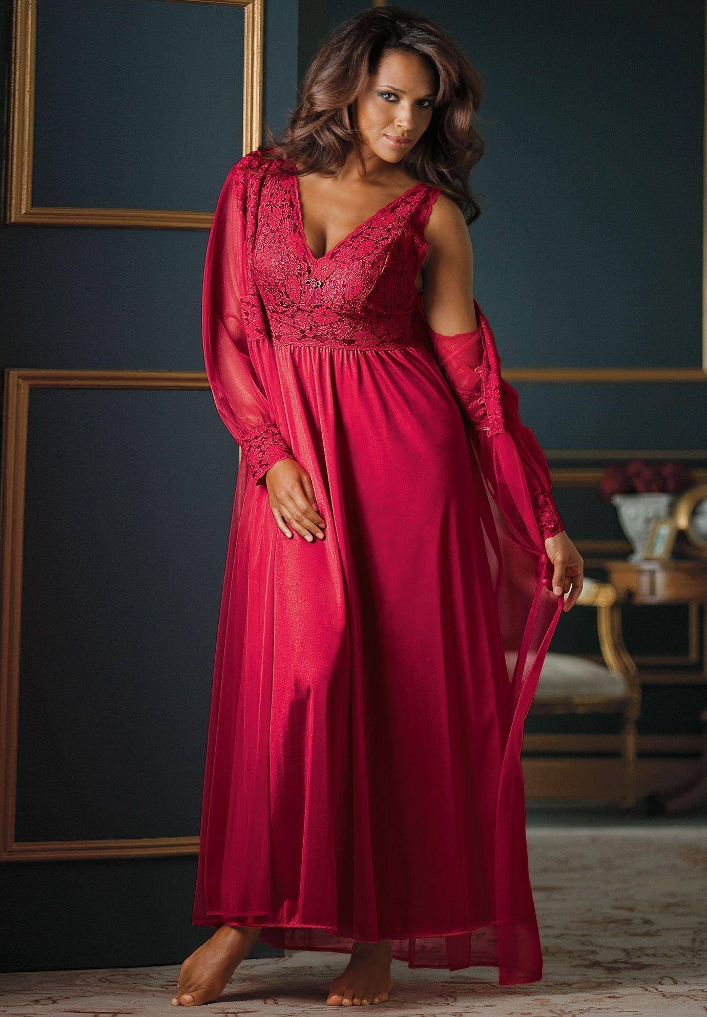 Длинная и расклешённая юбка удачно скроет полноту ног, а завышенная талия отвлечёт внимание на объёмах в области талии. Глубокое декольте сделает акцент на груди, а прозрачные или кружевные вставки в верхней части пеньюара сделают плечи и шею более изящными. Вариаций множество