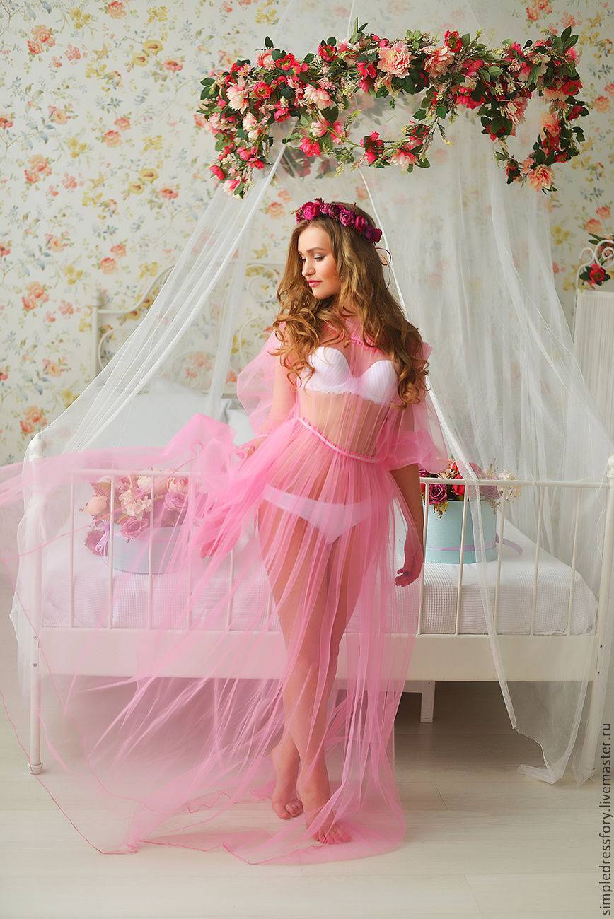 Для беременных созданы специальные модели. Удобнее всего пеньюары с халатом и кимоно, которые можно с помощью пояса отрегулировать по размеру живота. Подходят и викторианские модели с разрезом от груди. Ткань в них будет создавать шлейф, прикрывать живот, но не стягивать его.