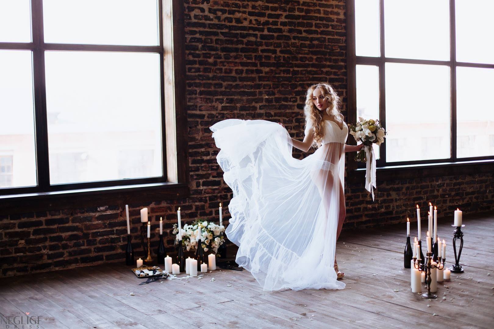 В первую брачную ночь невеста должна выглядеть, как пожелает, не стоит ограничивать себя рамками и советами. Пеньюар может, как олицетворять невинность, так и откровенно заигрывать с женихом. Он не должен быть слишком скромным.