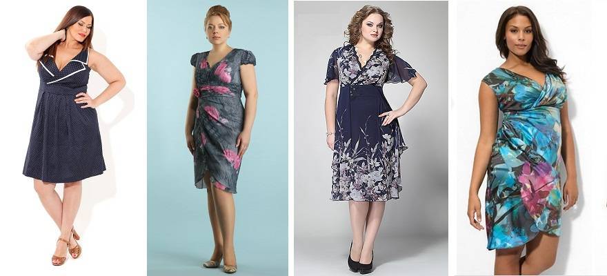 При выборе модного платья для полных женщин невысокого роста учитывайте свое телосложение. «Груша» отличается наличием широких бедер, узкой талии. «Яблоко» характеризуется округлой формой туловища. «Прямоугольник» не имеет выраженных линий. В «песочных часах» тонкая талия, а ширина бедер и плеч одинакова. Под такую фигуру подбирается любой фасон платья для полных женщин, поскольку в этом варианте не требуется корректировка пропорций тела. Актуальными будут варианты, подчеркивающие талию, имеющие глубокое декольте.