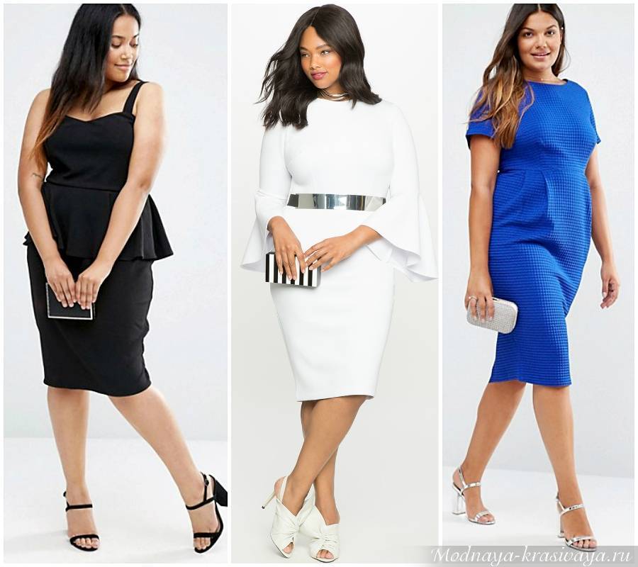 Это строгий фасон, который подойдет тем полненьким девушкам, которые собираются посетить официальное мероприятие или знакомство с родственниками жениха. Фасон отлично подходит девушкам с полными бедрами и большой грудью, но у которых тонкая талия, то есть их фигура напоминает песочные часы. Если же животик полноват и выступают бока, то лучше выбрать платье с баской, которая скроет эти нюансы.