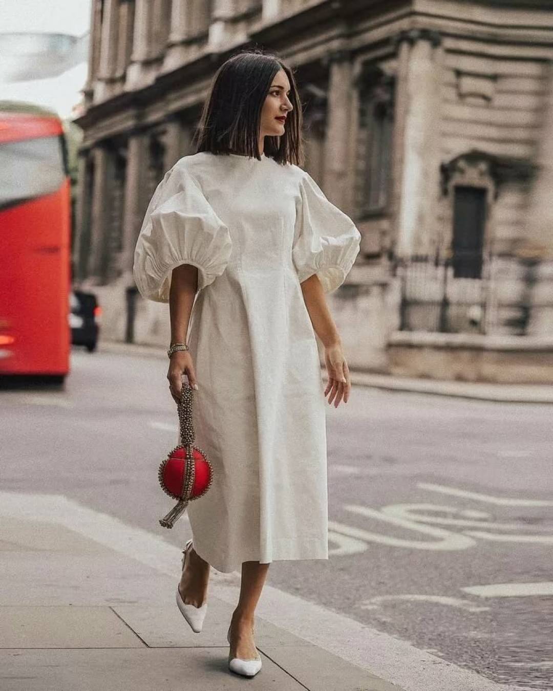 Отдельным трендом можно считать объемные рукава, которые присутствуют на платьях любой длины. Рукава выполнены из плотной ткани, способной держать форму