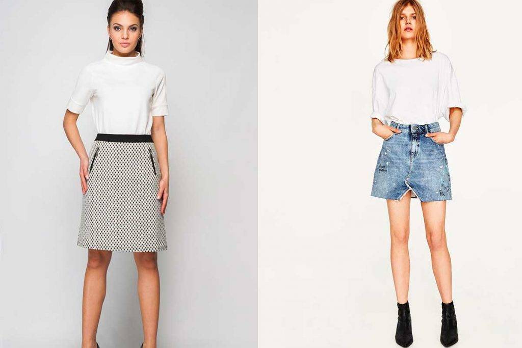 Молоденькие девушки с фигурой прямоугольник могут позволить себе даже экстремальное мини. Если вы переживаете по поводу лишнего веса, присмотритесь к юбкам с заниженной талией.