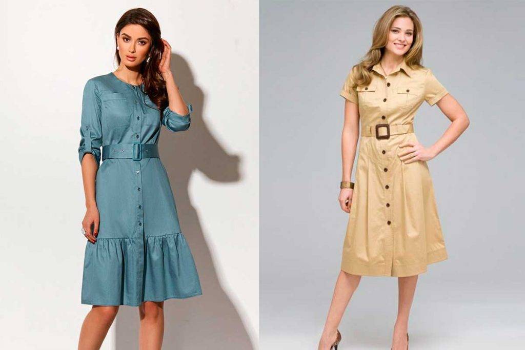 Платья-рубашки отлично помогут сделать ваши плечи визуально уже чем линия бедер. Они могут быть приталенными или больше на пару размеров приближаясь к стилю оверсайз. Только в таком случае платье будет требовать от вас пояса, который стоит использовать строго по талии, и стараться повязать бант именно спереди.