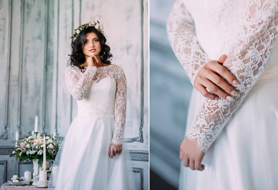 Рукава покажутся неуместной деталью, если лето выдалось жарким, а свадьба назначена на этот сезон. В другие времена года они спасут от ветров и холода. У народов, придерживающихся строгих традиционных взглядов на брак, выходить замуж нужно в платьях с длинными рукавами, прикрывающими запястья. Такой наряд символизирует чистоту и считается данью традициям.