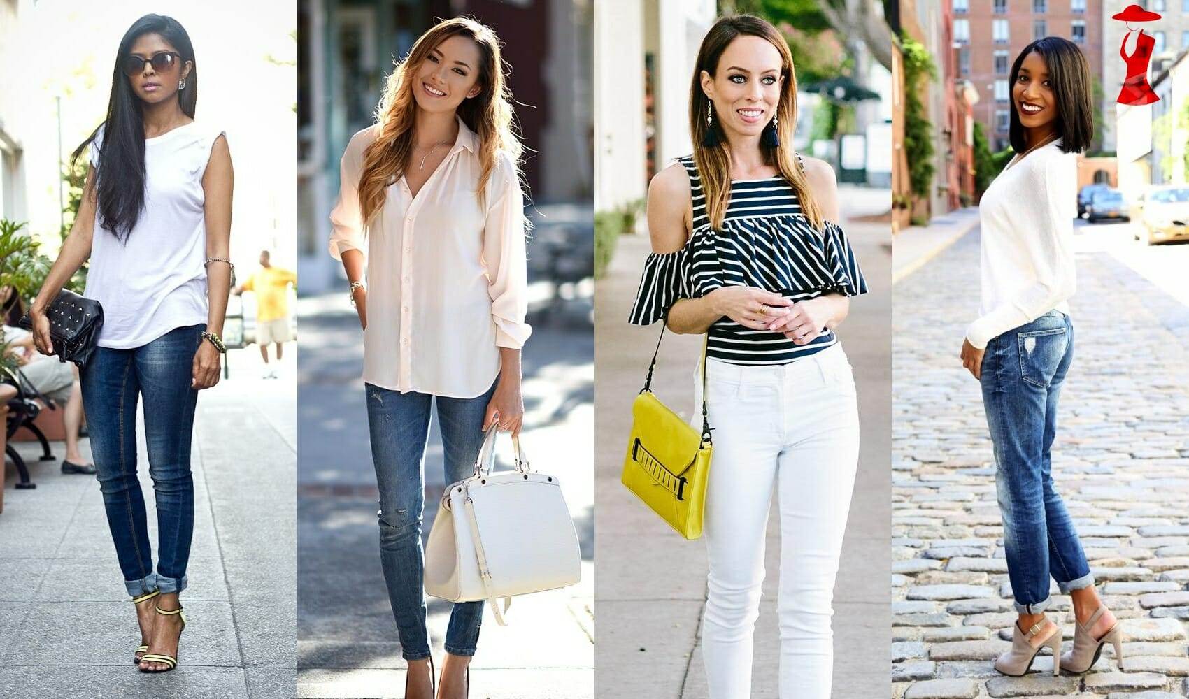 Ведь не обязательно выбирать брюки в привычном голубом цвете, можно обратить внимание на белые и черные. В любом случае стоит выбирать модели без потертостей и модных дырок, а шелковая блуза сделает аутфит более женственным и изящным. Также девушке можно надеть с джинсами красивый топ из кружева и дополнить облик черным жакетом