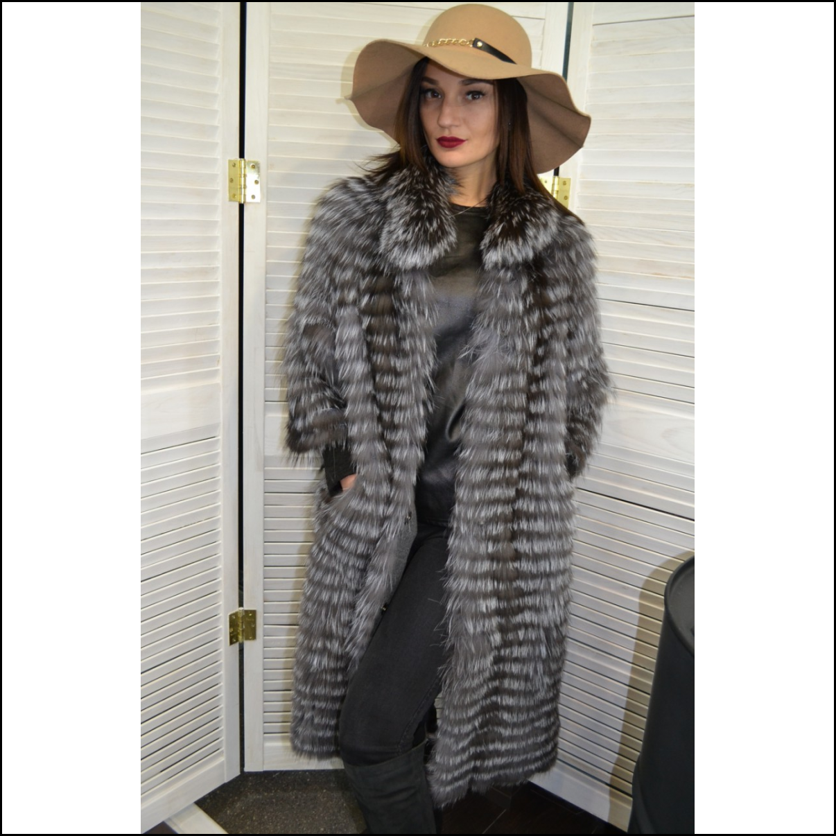 Мех серебристо-чёрных лисиц невероятно красив: с высоким ворсом, нежным шелковистым блеском, но одно из главных его достоинств – благородная цветовая гамма. Получается она благодаря тому, что шкура лисиц имеет сложную окраску – от черного до светло-серебристого цвета, при этом остевой волос обладает зонарной окраской: сначала темно-серое или чёрное основание, затем серебристое кольцо и иссиня-черные кончики, образующие вуаль. Именно благодаря этому сложному контрастному сочетанию шубы из серебристо-чёрных лис так эффектны.
