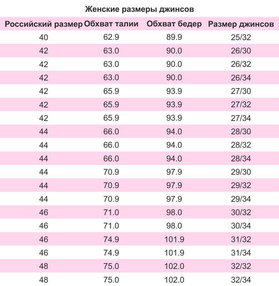 Ниже представлена таблица размеров женских джинсов Левайс:
