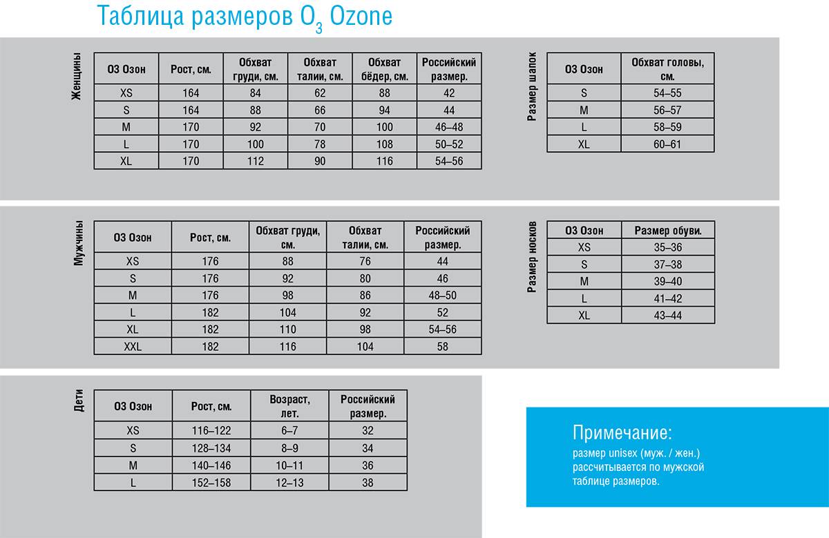 | Российский размер | Рост (см) | Обхват груди (см) | Международный размер |