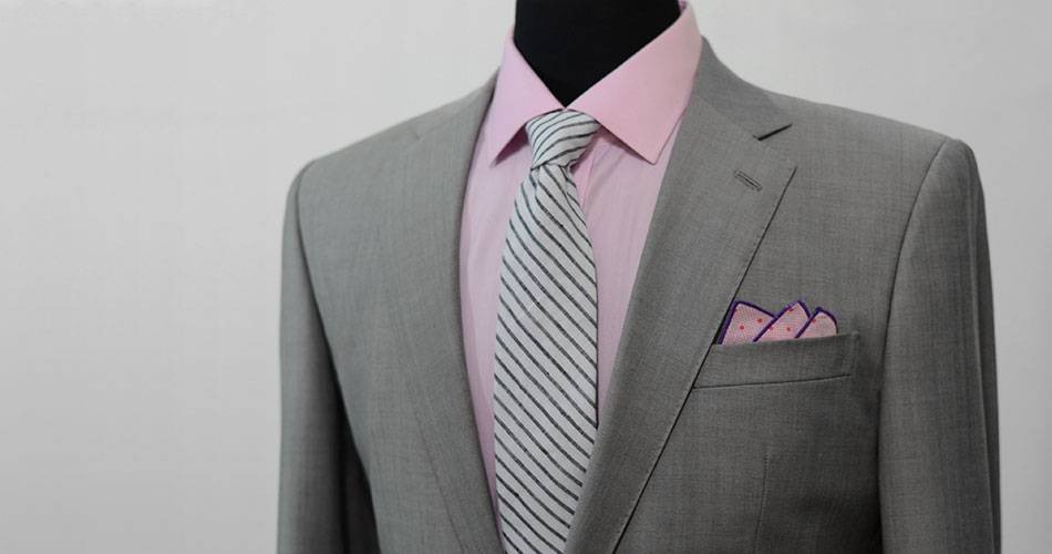Костюм серого цвета идеально будет гармонировать с рубашками следующих оттенков – розового, бордового, чёрного, фиолетового, голубого, бирюзового цвета.