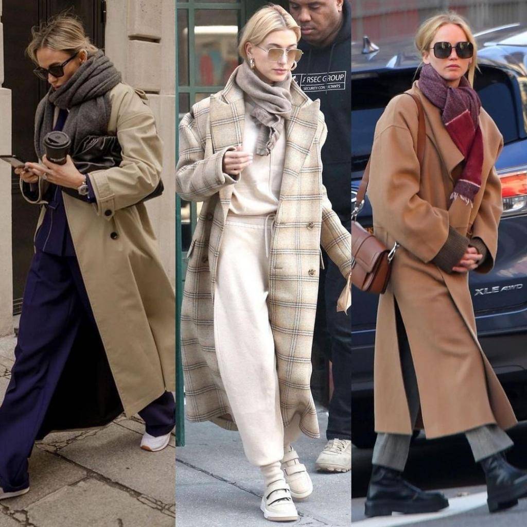 По-прежнему можно носить огромные шарфы, палантины, платки разных цветов поверх одежды. С наступлением холодов этот тренд стал актуальным.