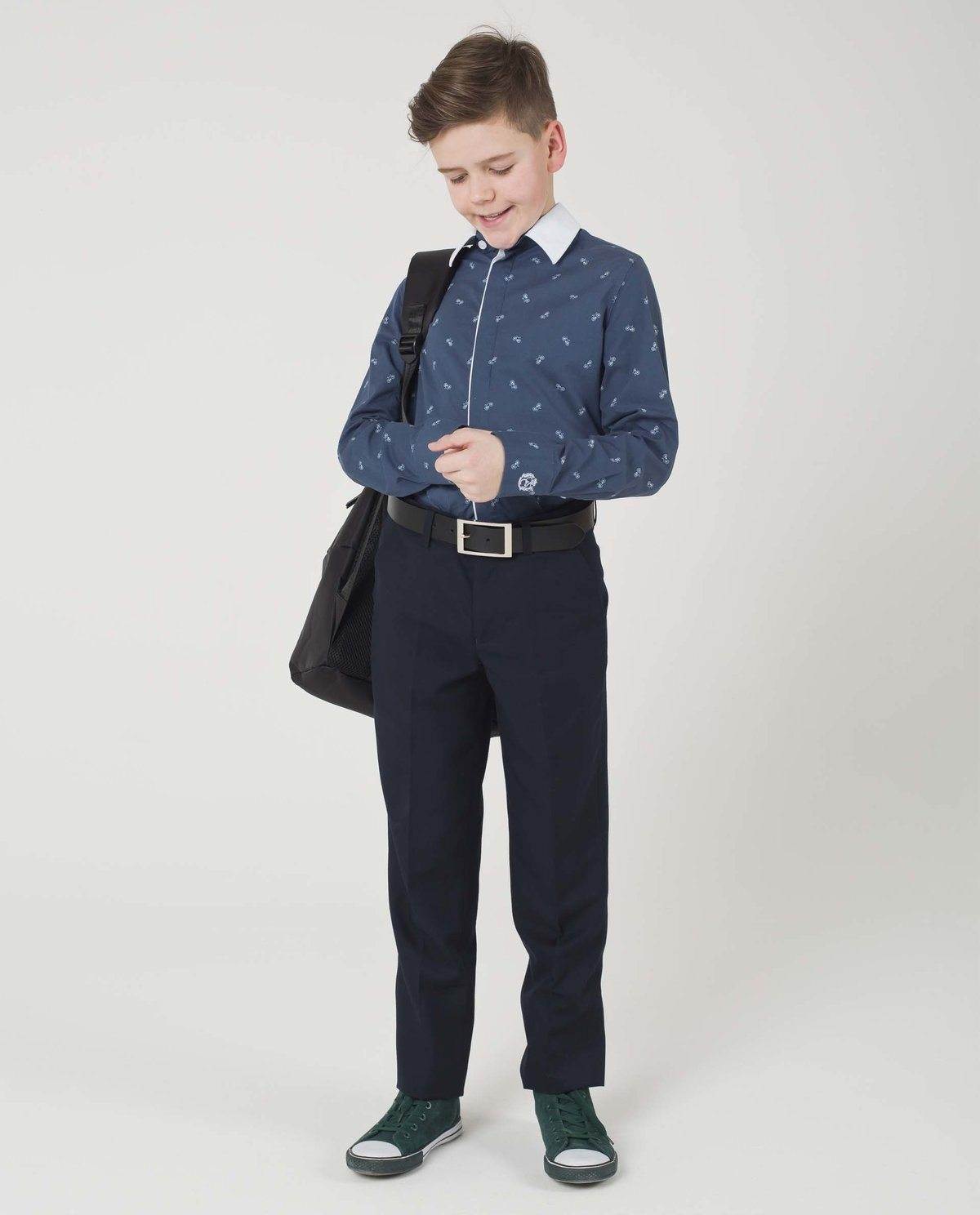 Традиционно длина брюк на мальчика подбирается таким образом, чтобы штанина сзади достигала середины каблука. При этом спереди должна образоваться небольшая складка. Это классика, но современные модели могут быть подшиты самых различным способом, к примеру, быть выше каблука на 1 см.