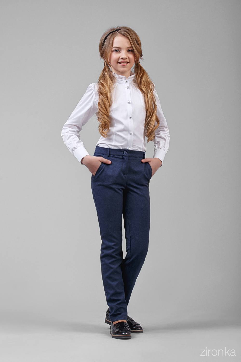 Основной критерий выбора школьных брюк для девочек – это фасон. Особенности кроя изделия определяют его допустимость в школьном заведении. Как правило, школьные модели выполнены в классическом исполнении, то есть привычные брюки со стрелочками. Они красиво выглядят на девочках младшего школьного возраста.
