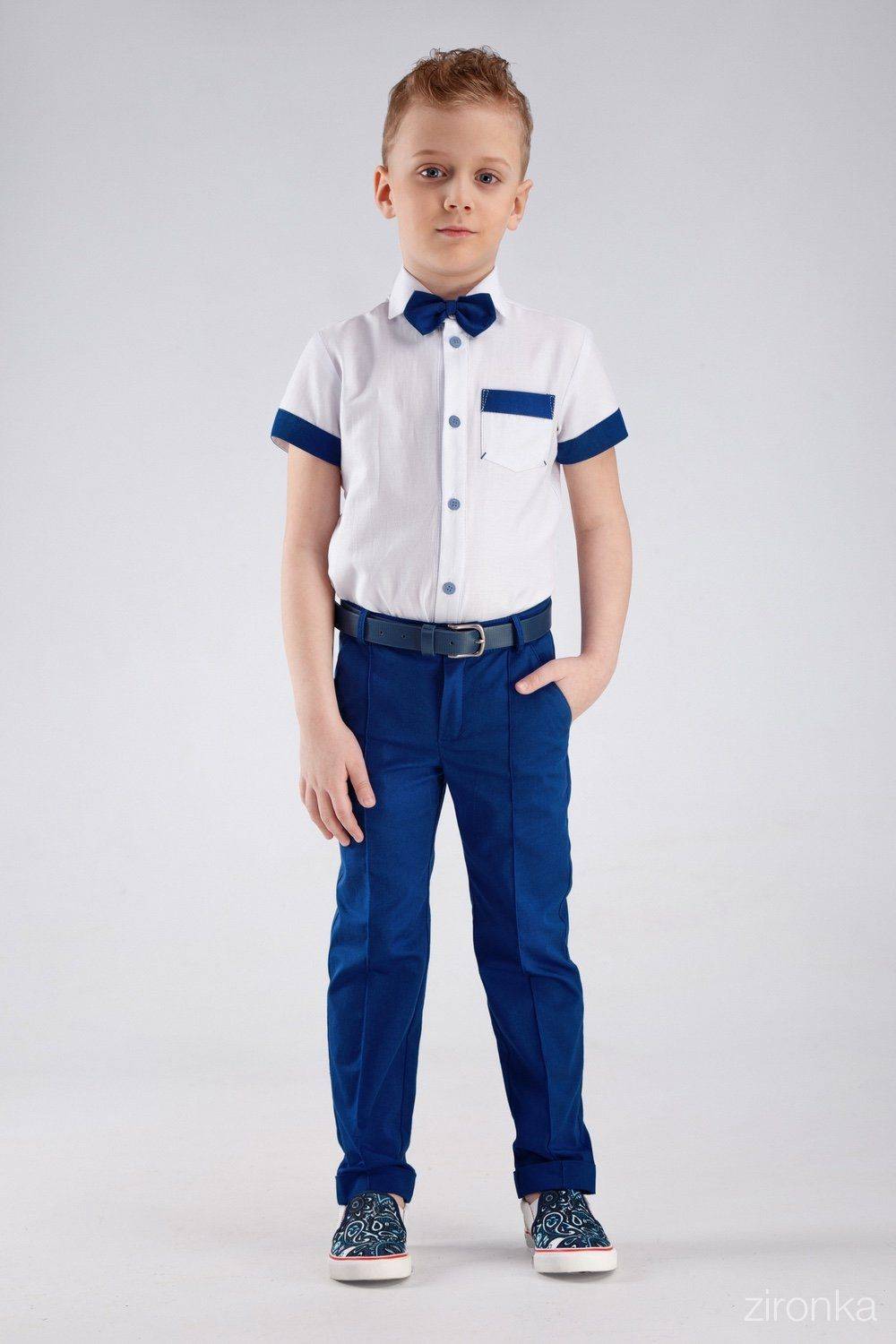 Разнообразие моделей для мальчиков значительно меньше, чем для девочек. Ученики первых классов в большинстве своем предпочитают только классические брюки со стрелками. В таком фасоне ребенок выглядит аккуратно и по-ученически строго.