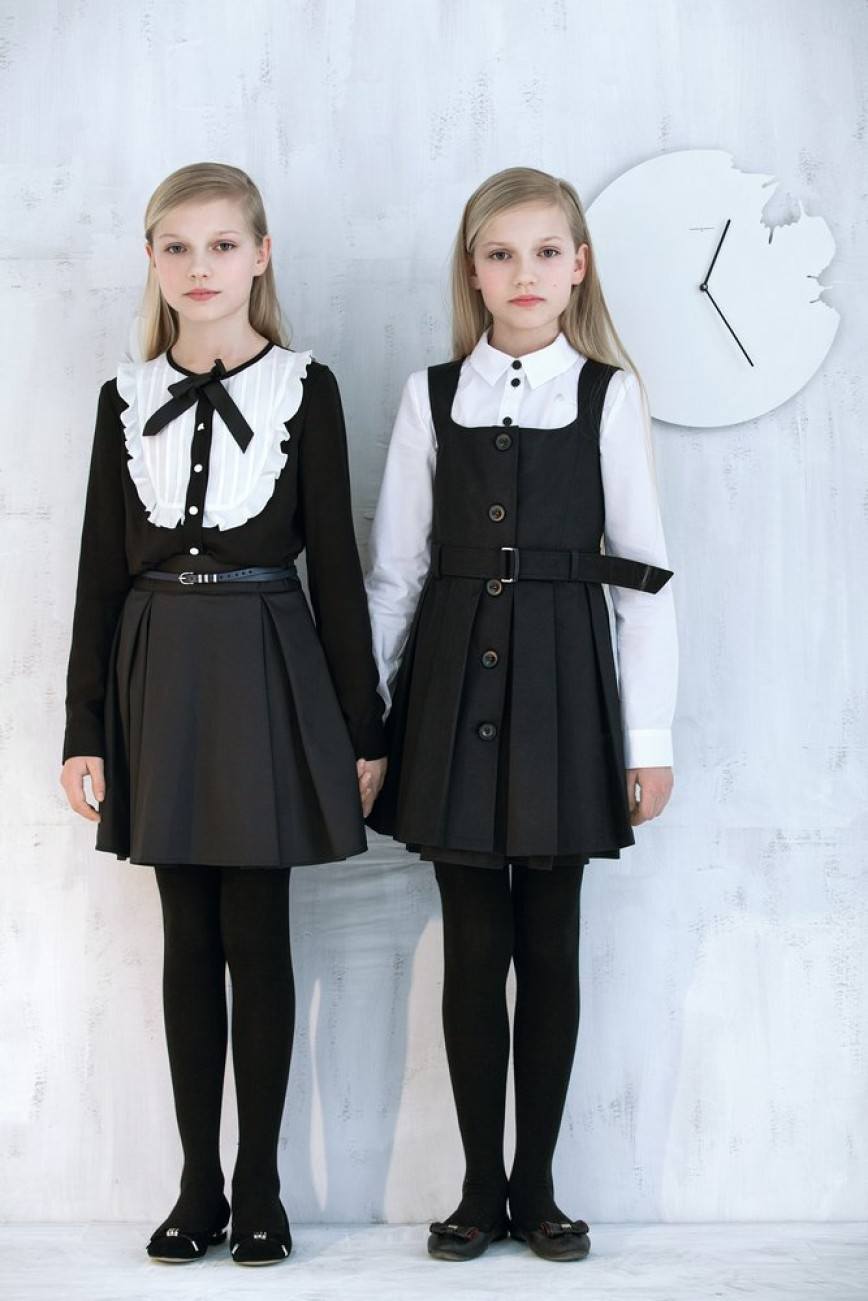 Сегодня же общепринятого фасона не существует. Осталась лишь договоренность относительно сочетания цветов. Светлый верх и темный низ — это классика. И именно такой комбинации просит родителей придерживаться администрация любой школы. Кроме стандартного сочетания блузки с юбкой или брюками девочкам разрешено носить сарафаны поверх светлой кофточки. Но сегодня бывает достаточно сложно подобрать вещь подходящего размера, особенно когда дело касается одежды для первоклашек. Зачастую вступающие на школьную тропу малышки просто не соответствуют общепринятой размерной линейке выпускаемой сегодня формы. И даже самые маленькие модели оказываются велики.