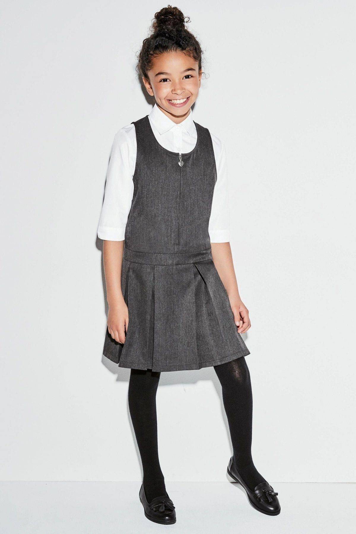 Если комплекты школьной формы вам не особо нравятся и у вас маленькая девочка, стоит попробовать очень практичные школьные формы типа сарафана и платья.