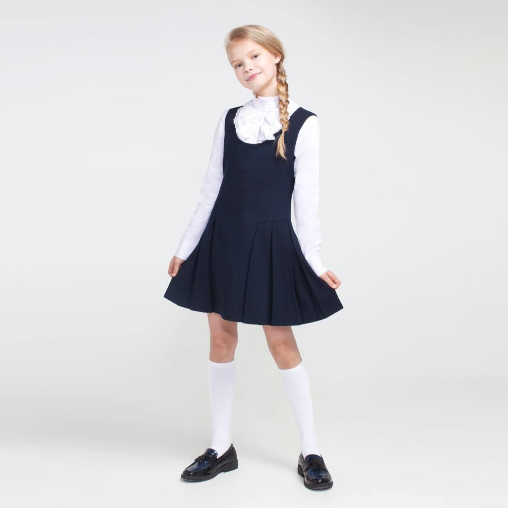 Школьная форма синего цвета пользуется высоким спросом. Но слишком насыщенный синий может показаться ярким для строгой одежды. Потому рекомендуется комбинировать сарафаны таких цветов с блузками и водолазками более спокойных оттенков.
