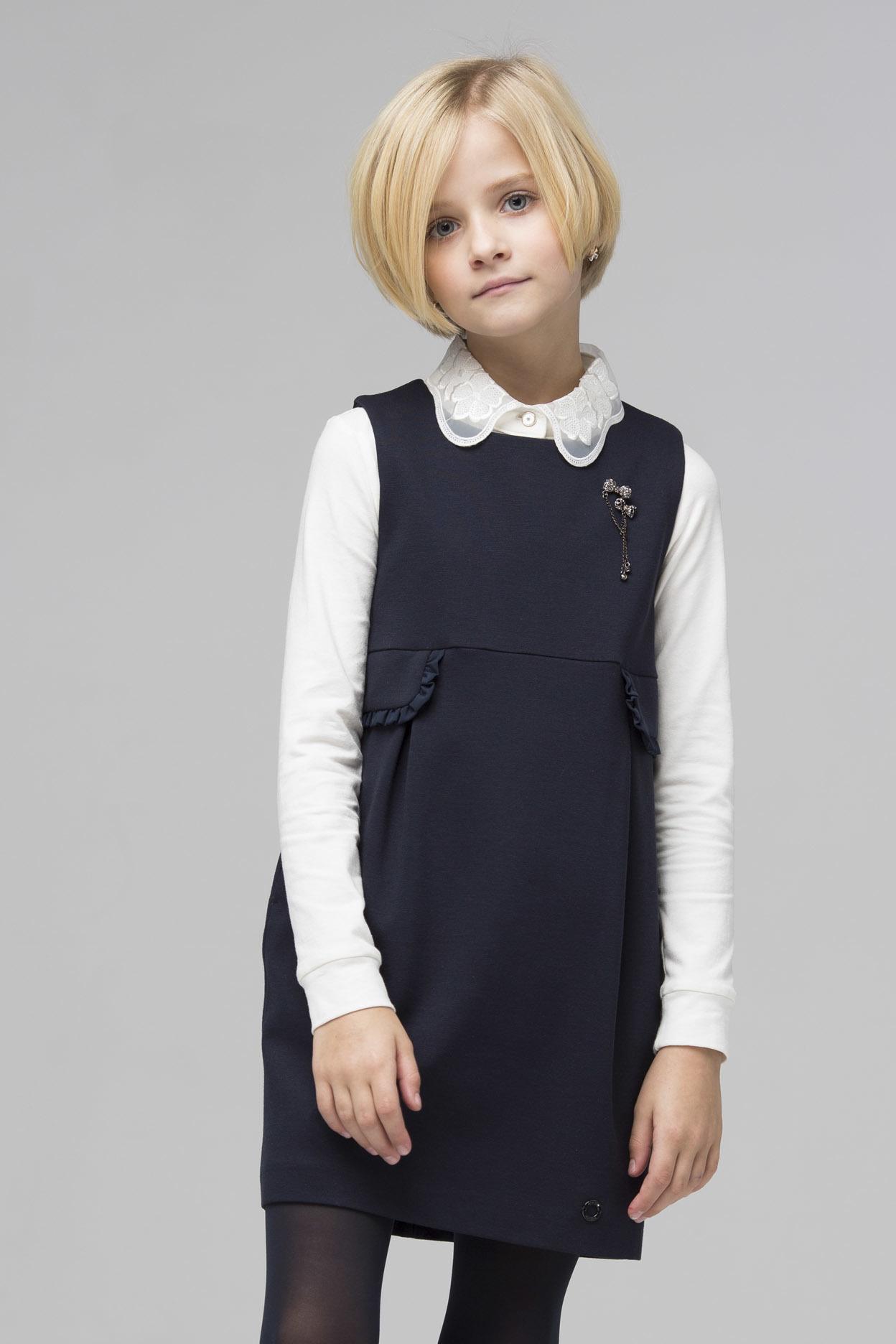 Девушкам, которым больше по душе платья, в школу подойдут сарафаны закрытого кроя. Как раз такие модели представлены в магазинах – в форме платья. Найти подходящий наряд подобного фасона довольно просто, так как представленные модели имеют различные формы горловины и воротничка.