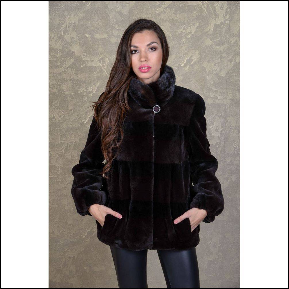 Модные шубки, в которых шкурки создают эффект полосок. Шкурки сшиваются горизонтально, поэтому создается такой эффект. Такие шубы стоят дешевле тех, где меховая пластинка сшивается горизонтально ворсом вниз.