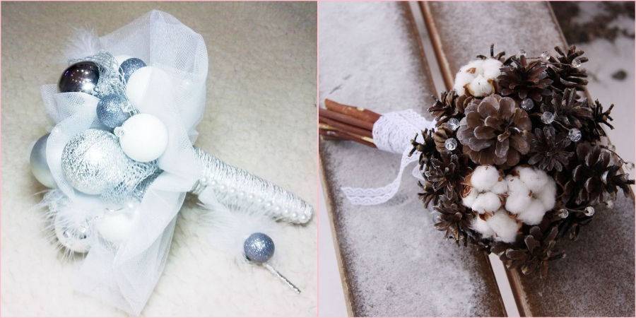 Идея! Такие букеты обычно делают круглыми. Их декорируют бантами или ниспадающими лентами из атласа, органзы, кружева.