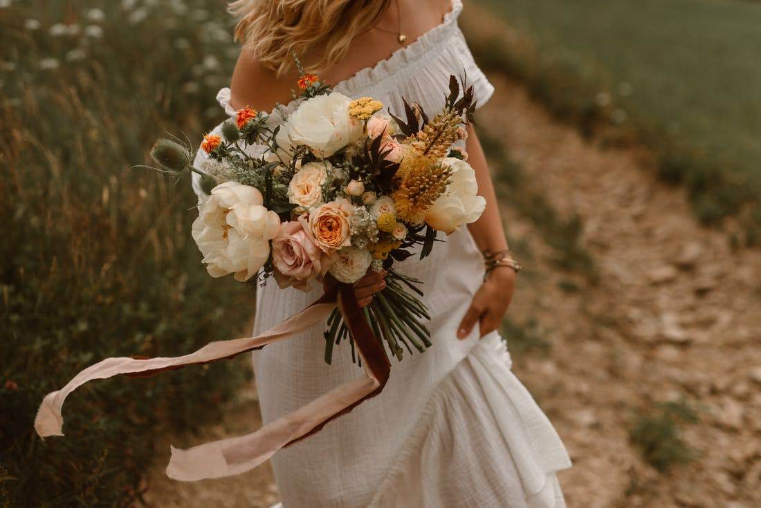 Выбирайте простые решения, в которых есть место недостаткам. Ошибки не простят гламурные или королевские букеты, ведь там идеальная композиция. Но вы можете позволить себе контролируемый беспорядок с букетами в стиле бохо и рустик. Выберите понравившиеся цветы и расположите их в правильном порядке, а для элегантного эффекта украсьте букет соответствующим украшением. Может быть, модная шелковая лента в 2021 году.