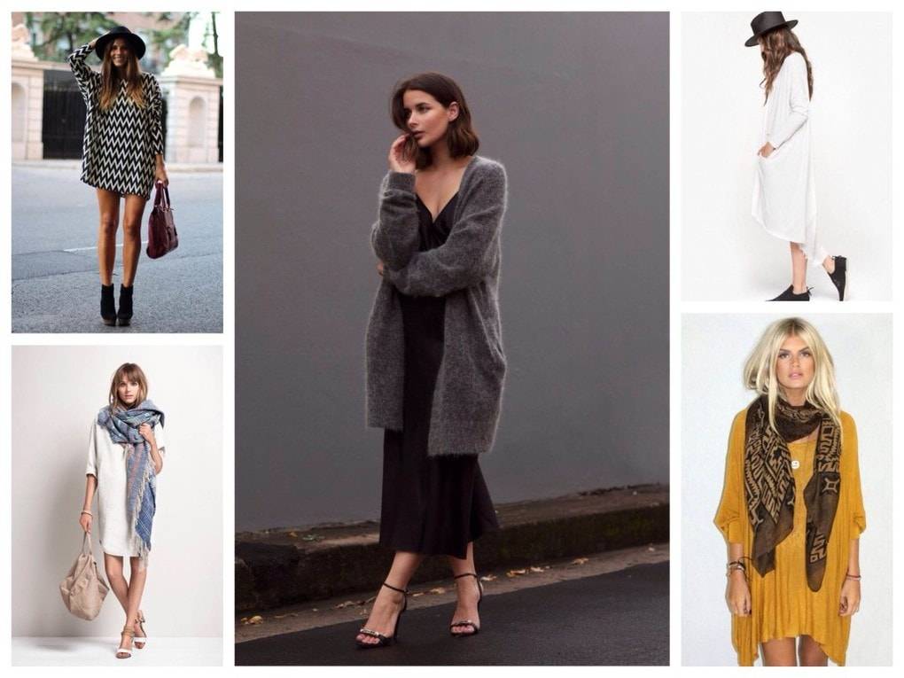 Нетрудно догадаться, что платья должны быть свободными, объемными, не стесняющими движений. Они могут выглядеть мешковатыми или вытянутыми, смотреться слегка небрежно. В зависимости от стиля, носить их можно как со сникерсами и кедами, так и с классическими лодочками.