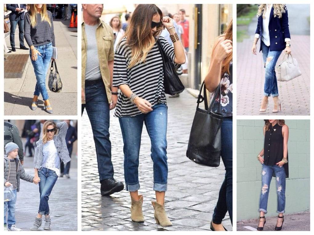 Это широкие, часто с низкой посадкой джинсы, которые являют собой воплощение street style. Их можно носить с обувью без каблука, а можно и с туфлями-лодочками. Зачастую такие джинсы потертые или рваные, от этого они выглядят по-хулигански дерзко и круто. Многие звезды (Сара Джессика Паркер, например) давно выделили для них особое место в гардеробе.