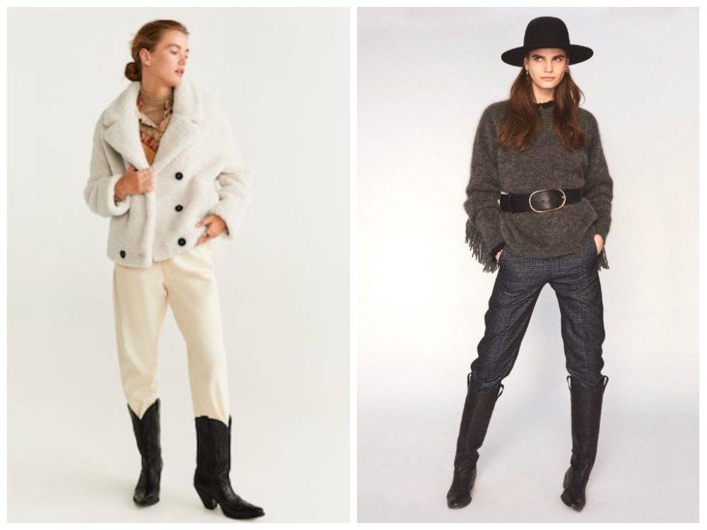 Ну а если претендуешь на звание первой модницы, то подворачивай или заправляй прямо в обувь брюки-бананы. Еще один стильный вариант — надеть с такими сапогами прямые укороченные джинсы.
