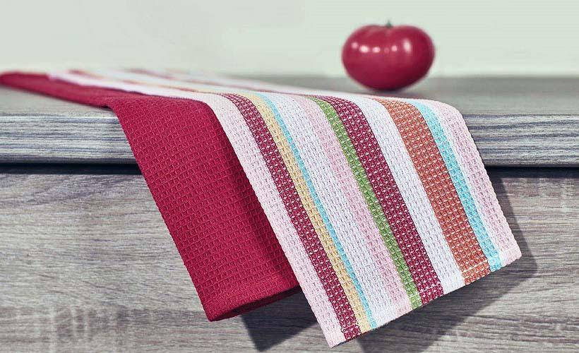 С другой стороны, натуральное хлопчатобумажное полотно также быстро высыхает. А в сухой среде бактерии и грибки не выживают и тем более не размножаются. Именно поэтому вафельное полотно с высокими гигиеническими характеристиками оказалось очень уместным на кухне.
