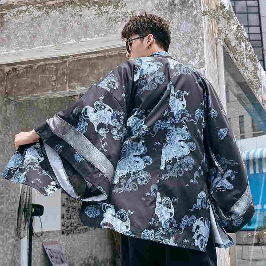 Японский халат запахивается в правую сторону. За счет этого левая деталь всегда располагается сверху, а правая находится внутри, максимально близко к телу. Рукава визуально схожи с мешком. В мужских моделях их втачивают. В женских вариантах в подмышечной области предусматривается отверстие под названием фурицуякути.