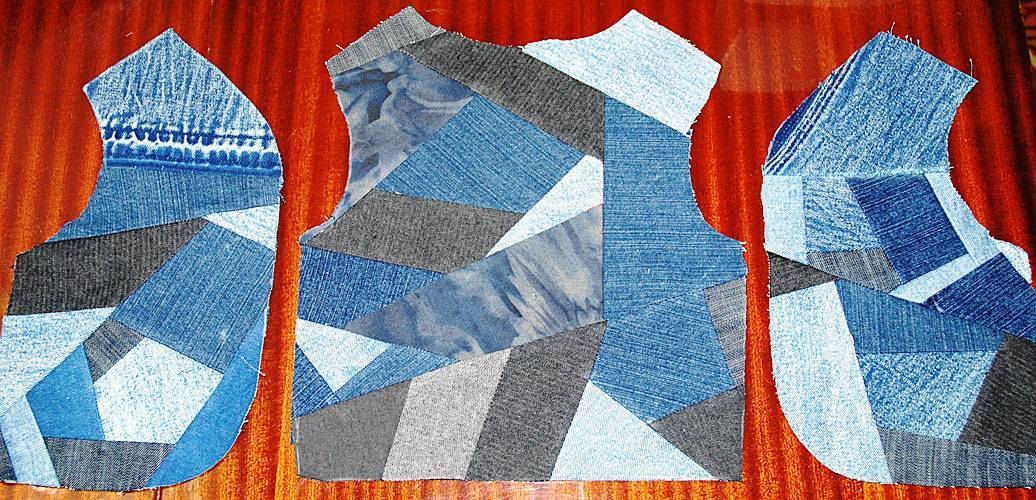 После раскроя, сметайте детали, примерьте жилет, внесите все необходимые поправки и приступайте к шитью.