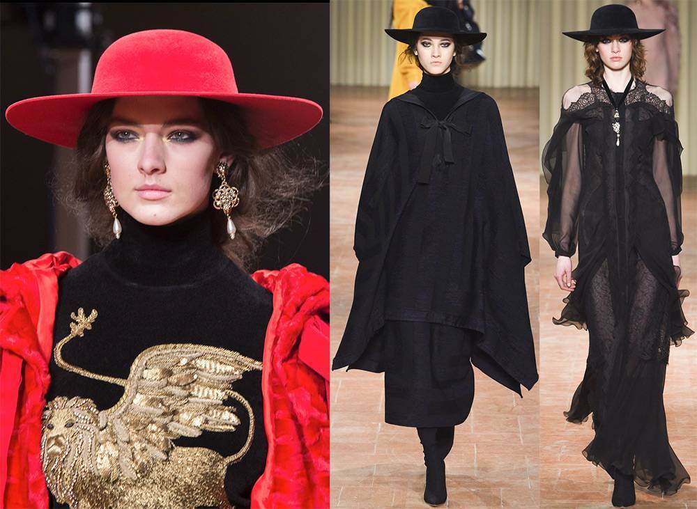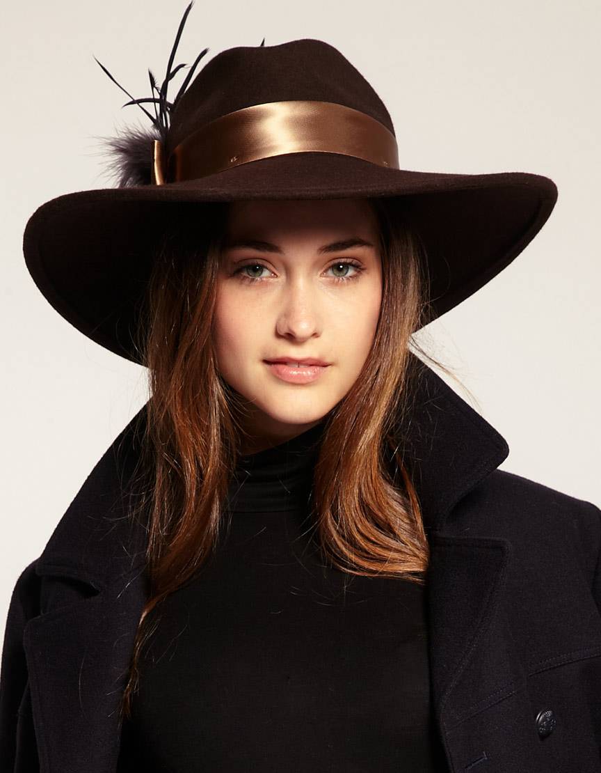Любая модель с широкими полями придает своей обладательнице слегка богемный вид. Она уместна с пончо, широким длинным пальто, короткой шубкой. Фасоны этих модных шляп разнообразны, как и их цвета. Никто не удивится, увидев девушку в песочном или изумрудном головном уборе с широкими полями. Наиболее смелые закрепляют на тулье контрастную или узорчатую шелковую ленту.